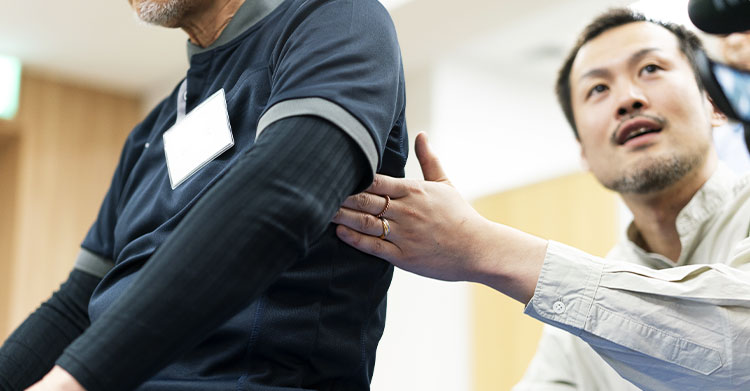 身体の3点にのみ現れる“打撲点”は、誰もが見落としてきた不調の原因。重症患者さんを数多く施術する中で福井先生が発見した箇所です。多様な経験に基づく身体の捉え方には教材担当者も思わず舌を巻くほど。 その考えはまさに目から鱗…!