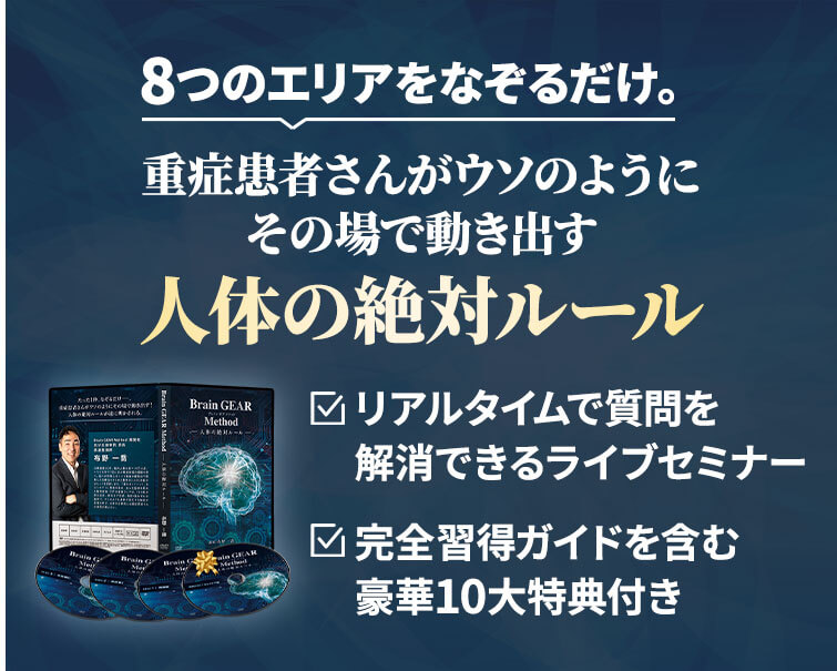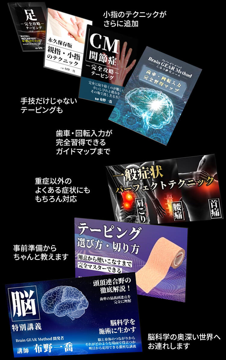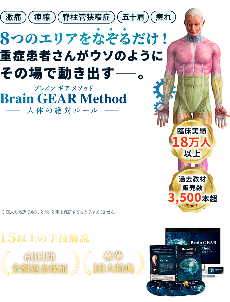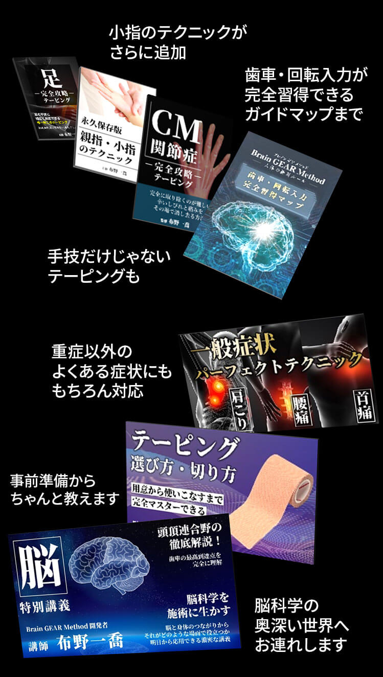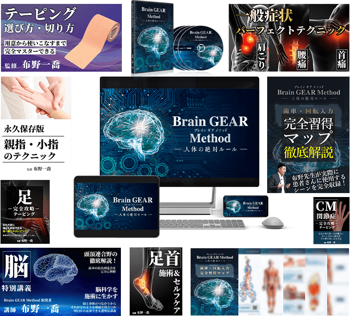| 『Brain GEAR Method』 手技教材 (やり方解説映像+理論解説を含む、約2時間1分の大ボリューム映像) |