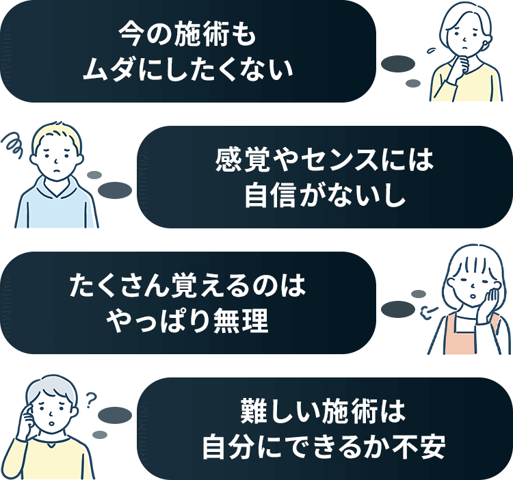 整体院は国家資格等不要ですが、接骨院、鍼灸院など個別の資格や手続きが必要なものもございますので、専門機関にお問い合わせいただくことをお勧めします。また開業を保証するものではございませんので、開業前の学びのひとつとして、ご検討いただければ幸いです。