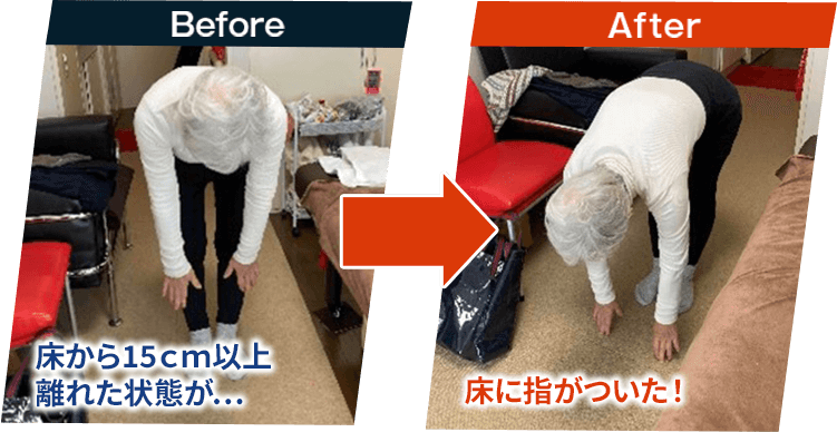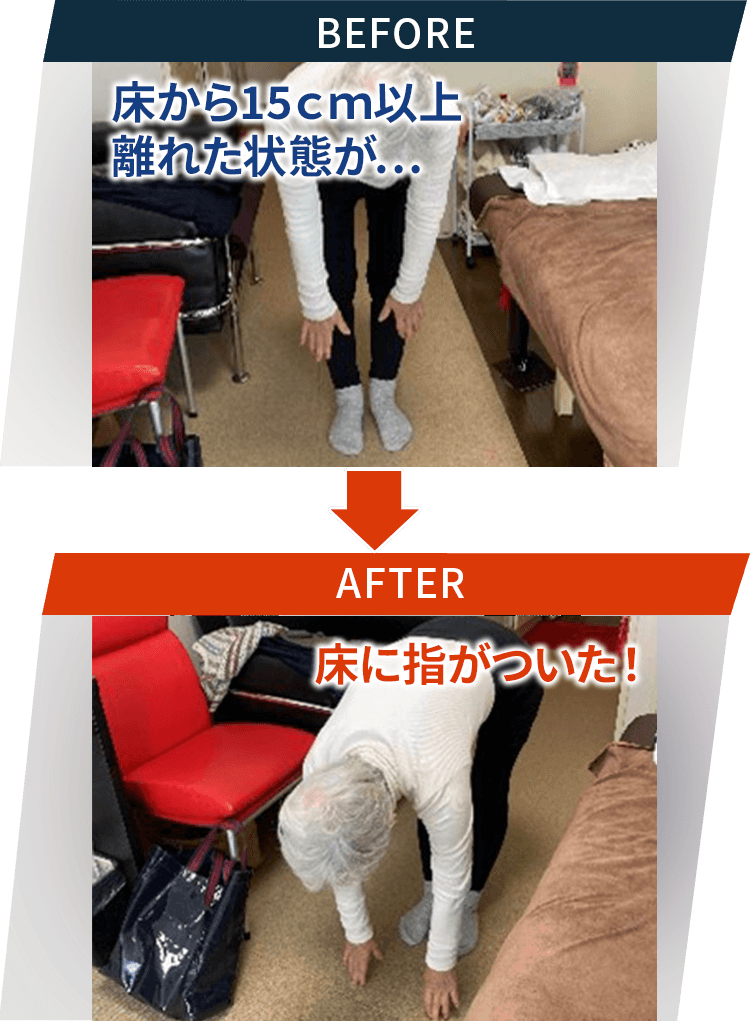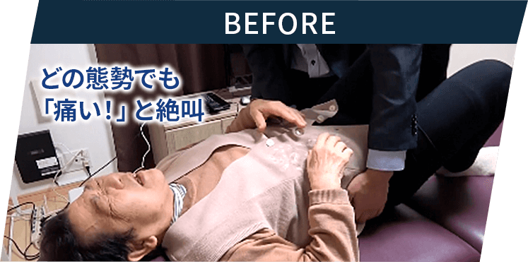 体勢変更や寝返りが一苦労、そんな方にもストレスフリーな施術を実現。全ての施術が仰向けで完了できるから、年配の方や重症の方にも安心。施術終了まで苦痛な瞬間を感じさせません。