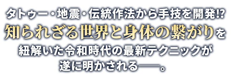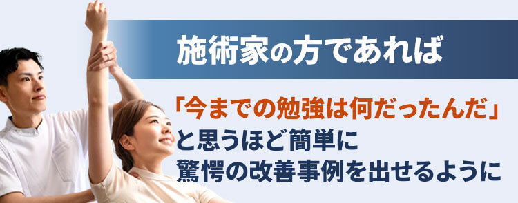 脳梗塞の後遺症、石灰化、骨化症、原因不明の痛み、パーキンソン病、神経麻痺、潰瘍性大腸炎、脊髄小脳変性症、分離症、線維筋痛症、肩こり、首こり、頭痛、四十肩、五十肩、寝違え、めまい、耳鳴り、眼精疲労、猫背、円背、肘関節痛、手関節痛、ストレートネック、呼吸や自律神経系、蕁麻疹、喘息、腰痛全般、下肢の痛み(股・膝・脚など)、筋骨格運動系症状、むくみ、背部痛、下肢の痺れ(坐骨神経痛など各種神経痛)、肩関節周囲炎(四十肩・五十肩)、肘痛全般、うつ病、アトピー、アレルギー、テニス肘、ゴルフ肘、野球肘、腱鞘炎、手根管症候群、ばね指、急性腰痛(ギックリ腰)、椎間板ヘルニア、変形性腰椎症、腰椎すべり症、狭窄症、鵞足炎、梨状筋症候群、膝痛、変形性膝関節症、変形性股関節症、足底腱膜炎、足関節捻挫...etc.