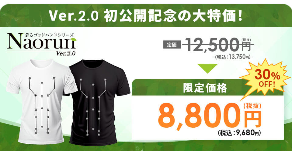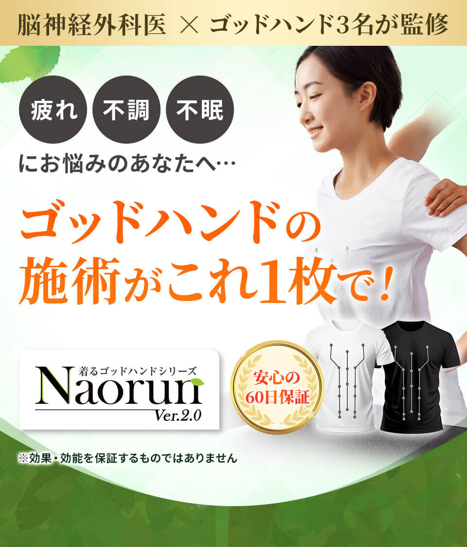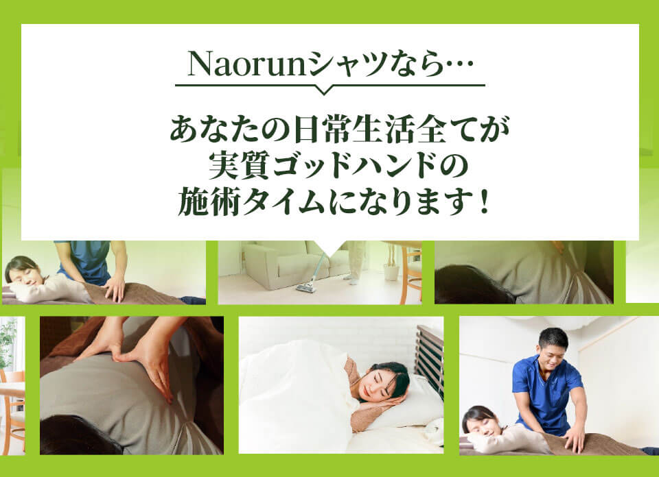 普段、冷え性や慢性的な肩凝り・腰痛に悩んでいましたが、このNaorunを着るだけで身体がジワ〜っとポカポカしてきて姿勢が