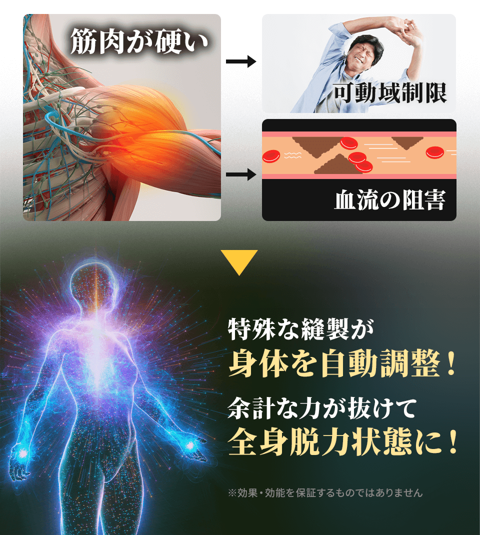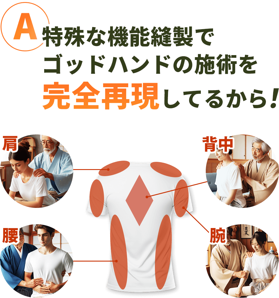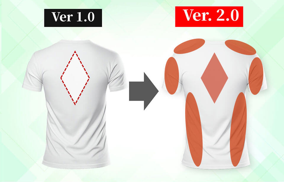 背中のダイヤモンド加工だけでなく、新たなに追加されたしかけのような絶妙な縫製により、以前よりも“全身を優しく施術されている感覚”があります。まだ着たことがない方は、『本当にそんな感覚を感じるの?』と思われるかもしれませんが、着用してみると実際に体感します。