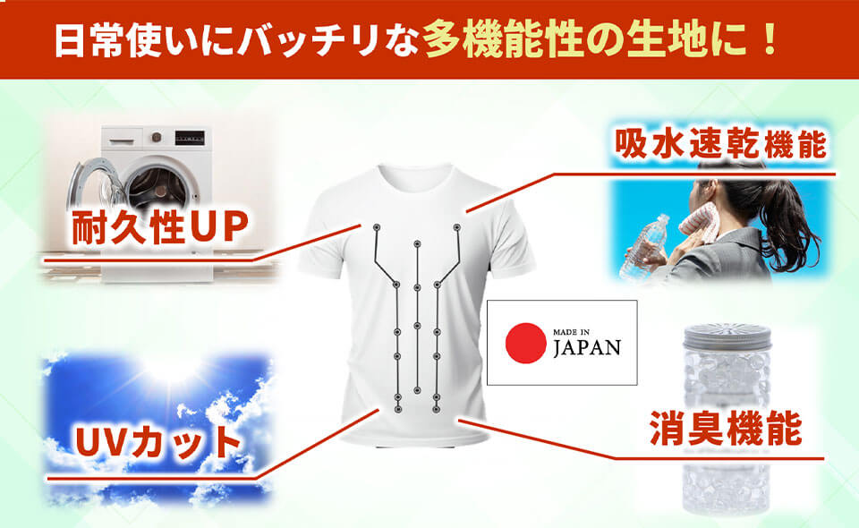 なし | 吸水速乾/消臭機能/ UVカット/耐久性UP |