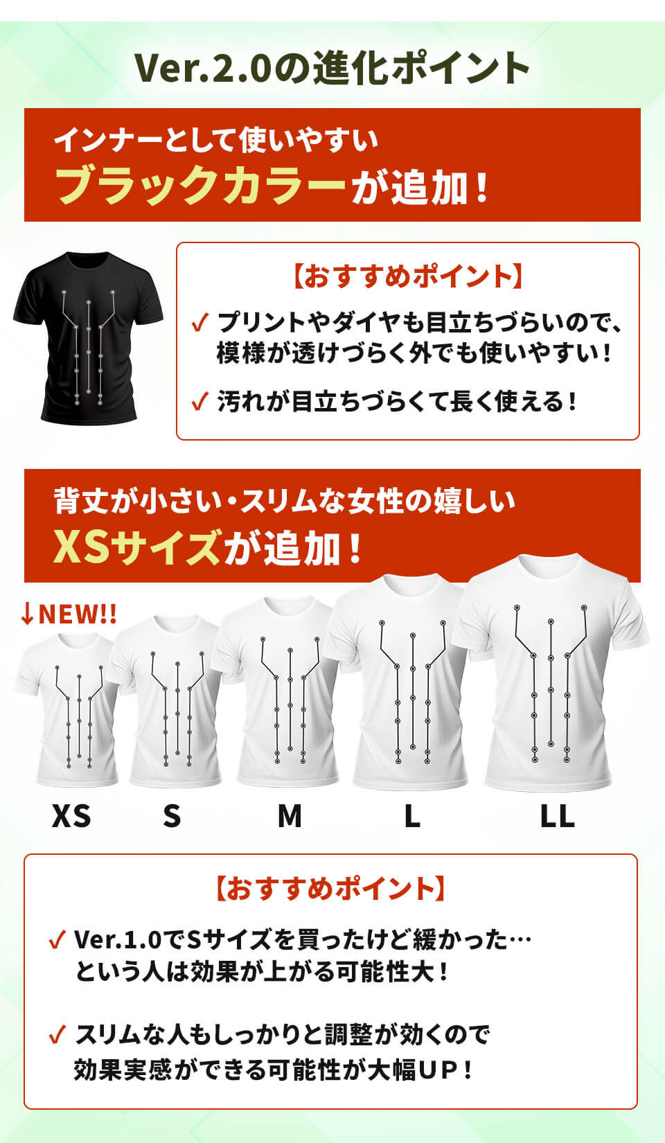 女性に嬉しいXSサイズが追加!