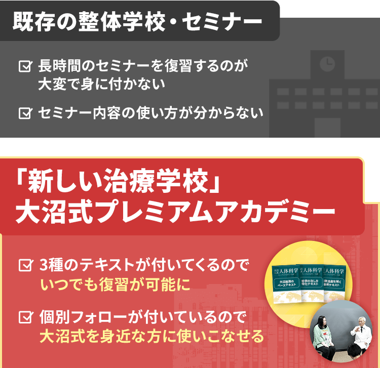 プレミアムアカデミーでは、大沼式の理論、病気の治し方、価値観をいつでも見返せるテキストがテーマ毎に3冊も付いてきます。
