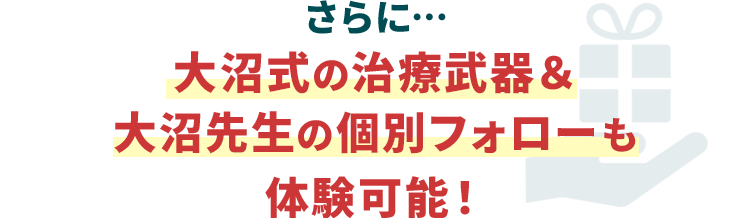 治療武器も使えるので、一般の方でも大沼先生並の結果を半年以内に出せるようになるのです。