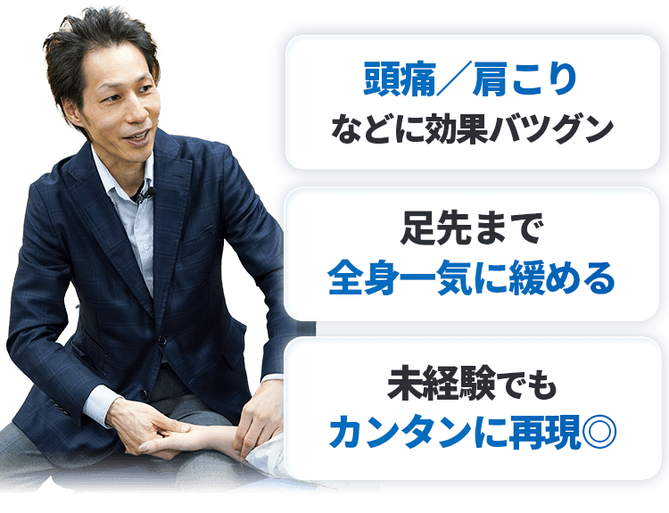 たとえ手術宣告された重度の症状でも腕一本で改善に導く様子から「まさにメスのいらない外科手術」と呼ばれている治療法。
